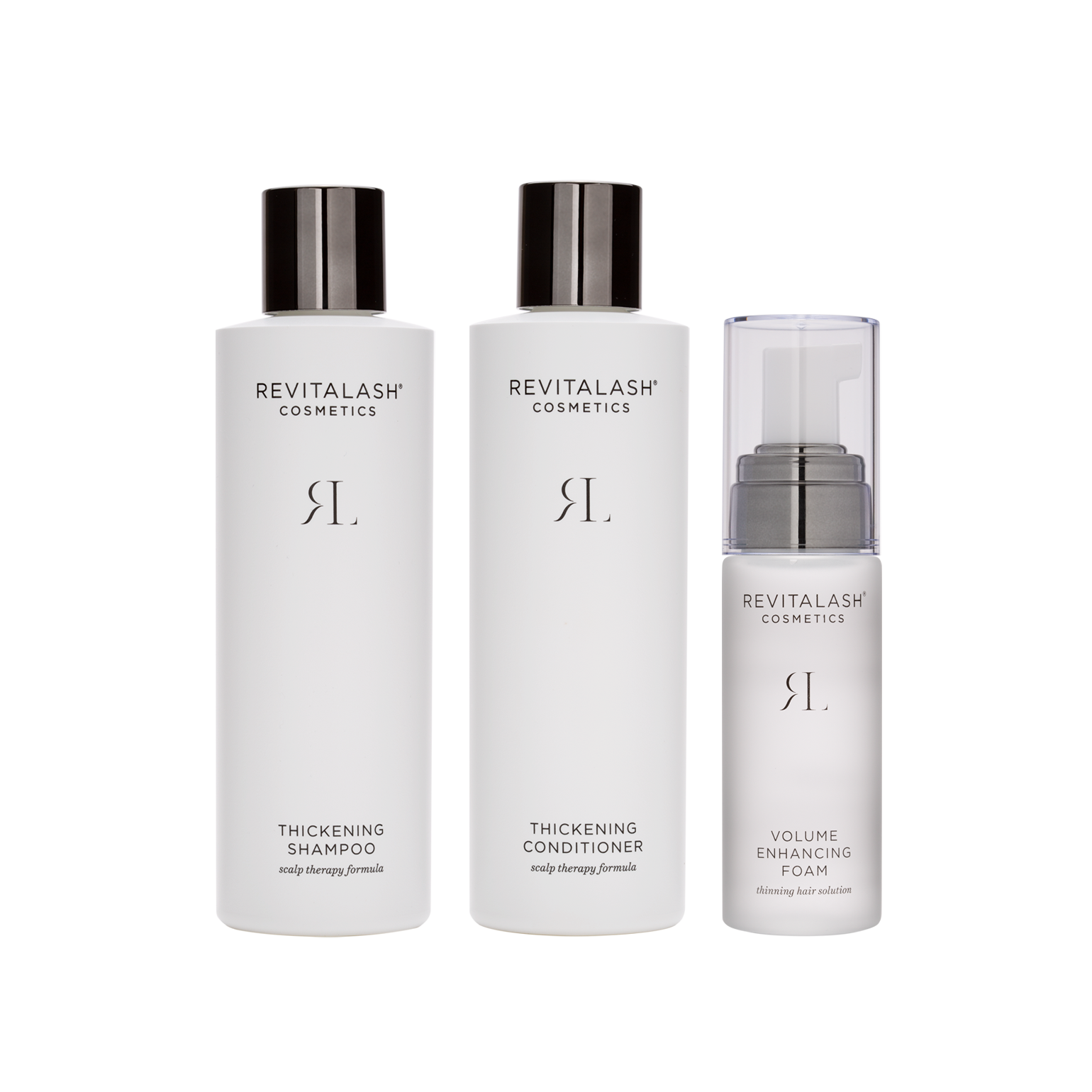 Our thickening scalp therapy shampoo and conditioner optimise scalp health by nourishing, hydrating, and adding shine and body. Coupled with the hair volume enhancer delivering RevitaLash science to the hair, hair transforms for thicker looking and fuller-bodied locks you’ll love.